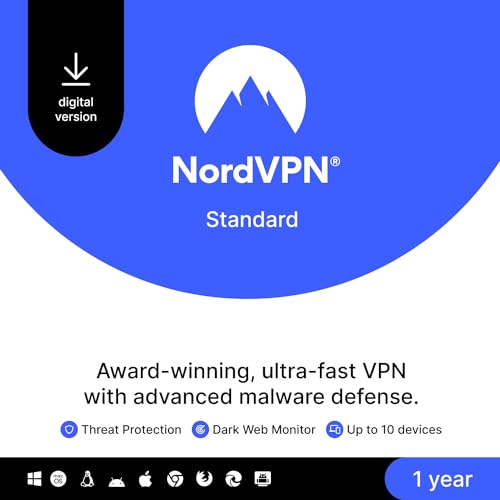 43% off NordVPN Standard, 10 Devices, 1-Year, VPN & Cybersecurity, Digital Code 43% off